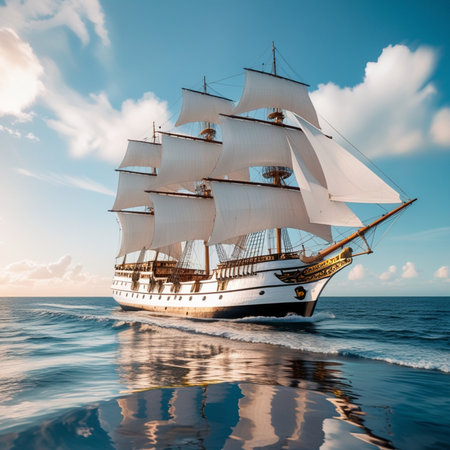 Tall Ship, Sailing ship on a calm ocean, 3d digitally rendered illustration AI generated