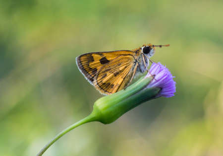 beautyfull butterfly sitting on a flower near green leaves on a summer evening