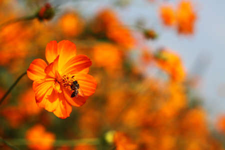 Cosmos sulphureus and bee