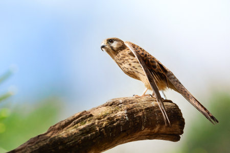 Close up of bird of prey perching on a branch. Common Kestrel (Falco tinnunculus)