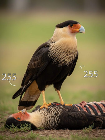 Caracara plancus or Crested Caracara standing on a branch watching over the hills