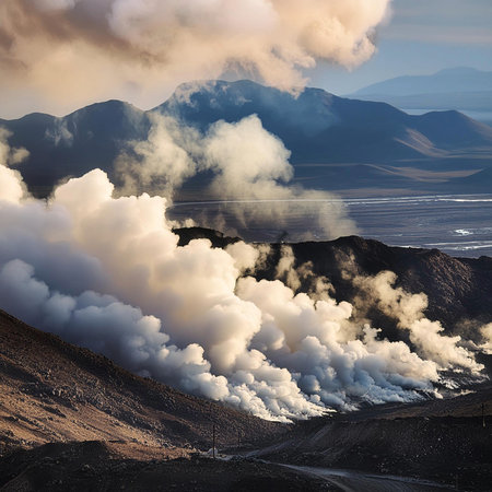 Dramatic volcanic landscape with vibrant colors reveals natures raw power