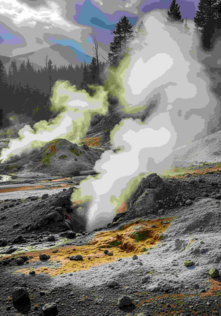 Icelandic geyser vapors and picturesque nature.