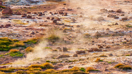 Geyser Sol de Manana, Bolivia. Beautiful unusual natural landscapes in South America.