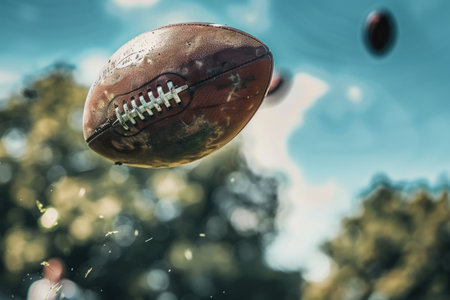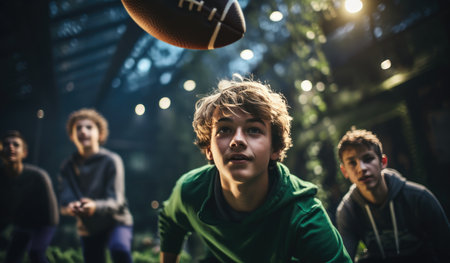The Catch A Football Suspended in Mid-Air, Gripped by Blurred Hands in a Dramatic, Cinematic Moment