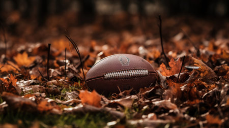 American football ball with natural lighting on dark background. Horizontal sport theme poster, greeting cards, headers, website and app
