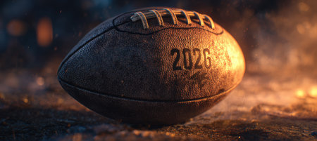 Textured Football with 2026 Marking in Cinematic Edge Lighting