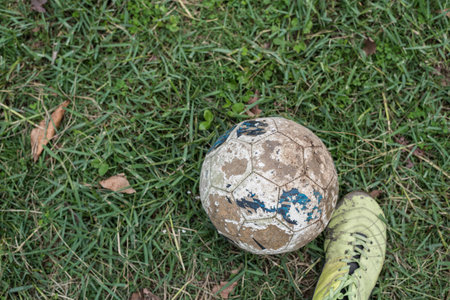 old soccer football with old soccer shoe