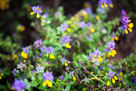 Small flowers on the spring meadow. Carpathian, Ukraine, Europe. Beauty world.