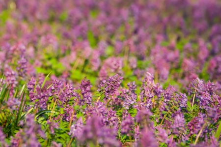 Corydalis solida ( fumewort) flowers, close up shot, local focus