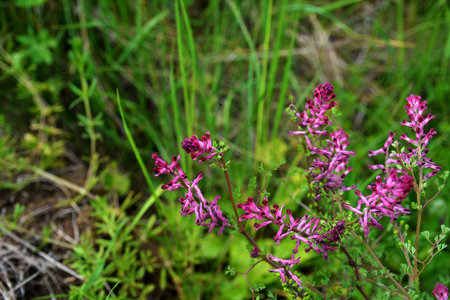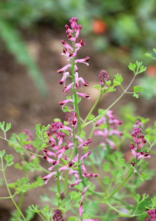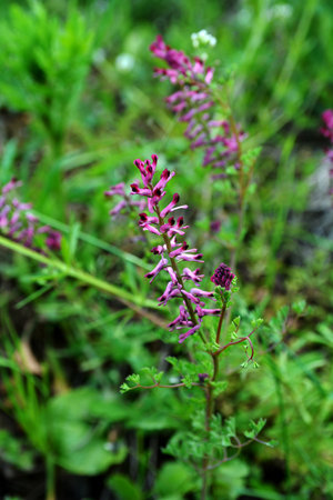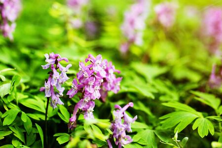 Corydalis solida on a garden. Traditional spring plant in the forest of northern Europe and Asia. Seasonal flowers background concept