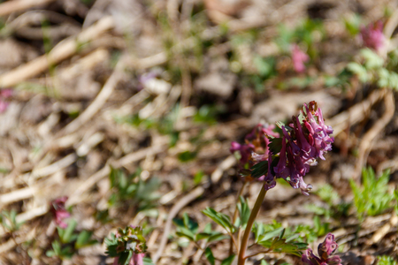 Corydalis solida, purple typical forect springflower, in bloom in the Netherlands