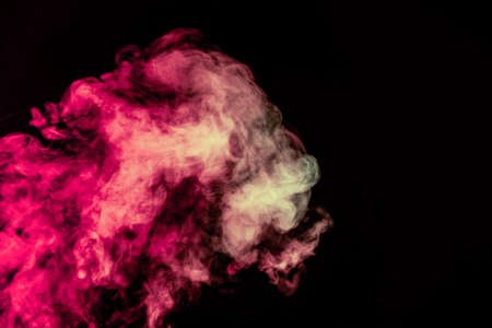Colorful pink and red smoke on a black isolated background. Background from the smoke of vape