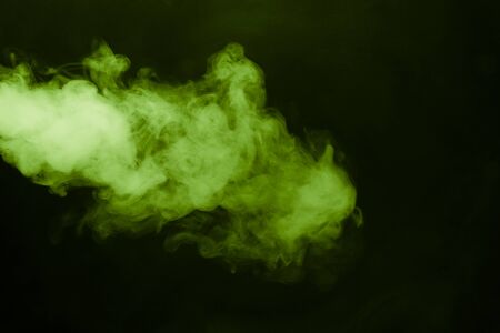 Multicolored smoke from a vape of green and red color of the strange mystical form on on a black isolated background. Bright clouds in the abstract form.