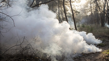 Trees with smoke by fogging machine.