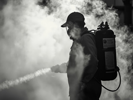 Pest control activities by fogging professional photography