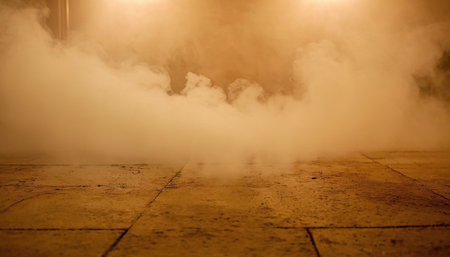 Nitrogen white cloud stream inside building room.