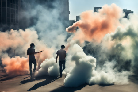 Smoke on city streets, urban scene