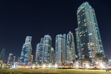 Dubai Marina at night in United Arab Emirates