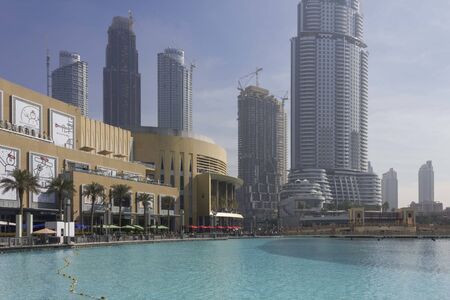 Dubai, UAE - February 12, 2020: Dubai Mall and Emaar buildings in downtown Dubai