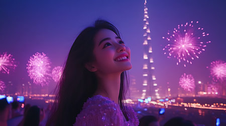 Dubai skyline with purple sky