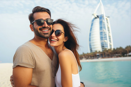 Romantic Couple Enjoying a Beautiful Sunset with City Skyscrapers in the Background Captured in a Stunning Urban Landscape AI Generative