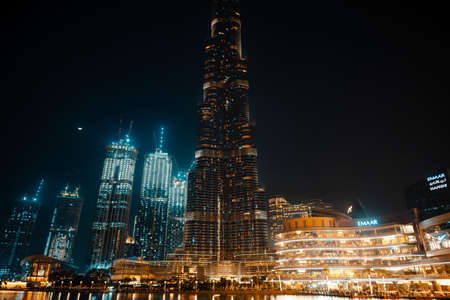 DUBAI, UAE - MARCH 15,2021: Burj Khalifa skyscraper in the night, Dubai