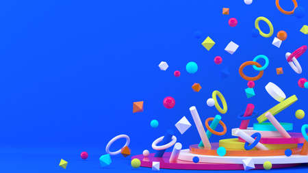 3d background. Abstract wallpaper. Shapes 3d. Flying geometric objects. Minimalism. Trendy modern illustration. Render. Stylish concept. Poster backdrop. Minimal style. Bright colors.