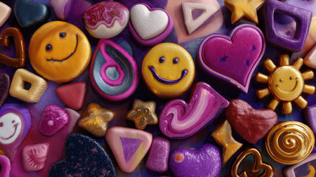 A vibrant assortment of decorative buttons and embellishments in various shapes and colors, perfect for creative projects, crafts, and design inspiration.