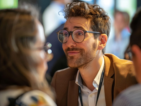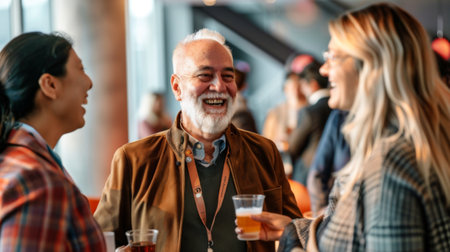Business professionals socialize at conference exchanging ideas and networking over drinks. Concept Networking, Business Conferences, Professional Socializing, Idea Exchange, Drinks Networking