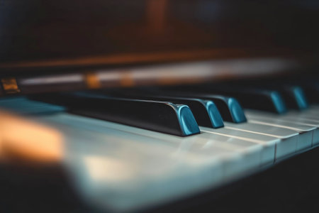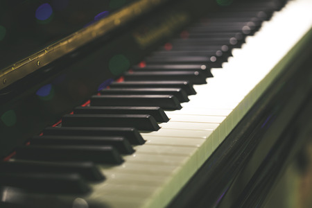Close-up or macro image of piano keys by selective focus technique can be seen the details of classic instruments used in both Jazz and pop music which background and foreground are blurred.