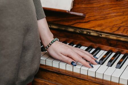 Girl's hands on the piano keys. Classical music. Musical rehearsal