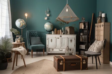 freshly painted room with vintage items for a cozy and stylish look, created with generative ai