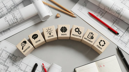 Explore an organized workspace featuring architectural blueprints and technical drawings alongside essential tools for project development and design efficiency.