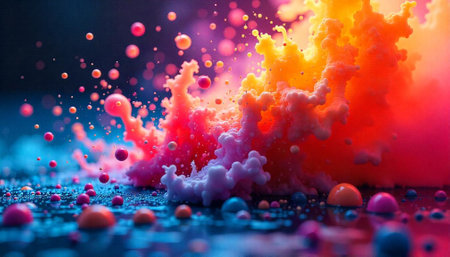 Dynamic splatter of colorful dots on a gradient background