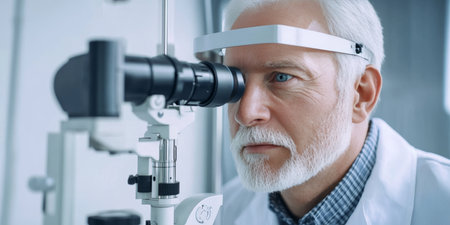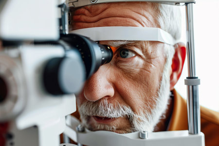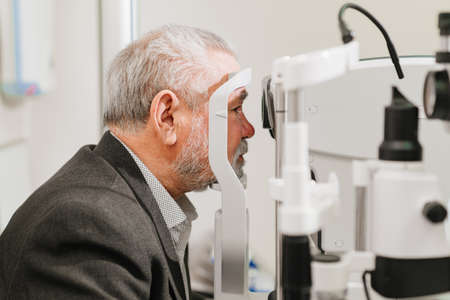 Mature Male Patient Undergoing Comprehensive Ophthalmology Examination in Modern Medical Facility