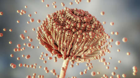 Fungi Aspergillus, black mold, which produce aflatoxins and cause pulmonary infection aspergillosis, 3D illustration