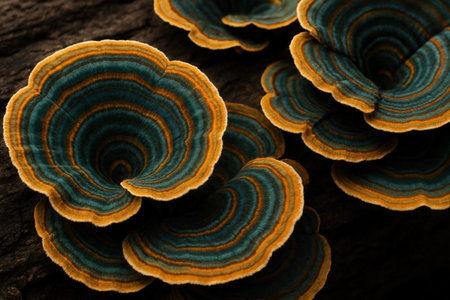 Exploring the vibrant textures of bracket fungus in a forest environment