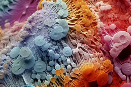 Colorful microorganism cells close up. illustration in high details for medical education and science. ai generative.