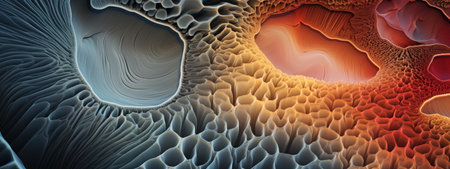 Vivid microscopic biology scene, showcasing cell anatomy. Close-up bacteria pattern, blending science and art.