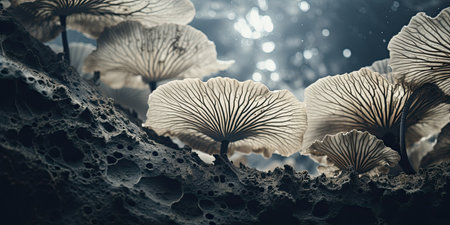 Mushrooms thrive on rich soil with varied textures and colors in natures habitat