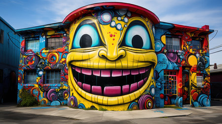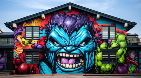 A vibrant and creative entrance to a house decorated with colorful graffiti street art. The bold and striking colors of the graffiti against the neutral background create a visually stunning contrast. This image is perfect for those looking to add a touch of creativity and individuality to their living space.