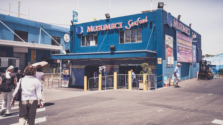 Night view of the colorful neon signs of a restaurant in San Diego.
