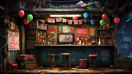 Carnival ride packed with vibrant balloons, creating a lively and festive atmosphere, A cheerful carnival filled with colorful balloons and whimsical rides