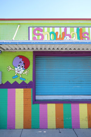 CAROLINA BEACH ,NC/USA - 5-01-2018: Colorful food vendor shop on the boardwalk in Carolina Beach, North Carolina