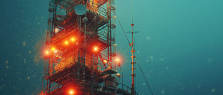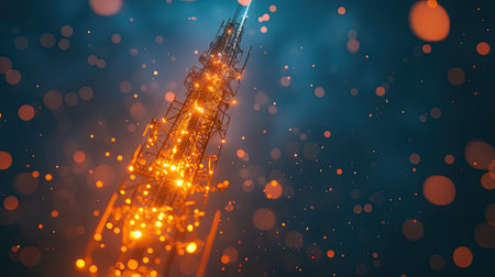 A close-up of a glowing communication tower, symbolizing modern communication technology.