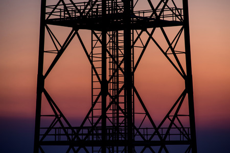 Telecommunication tower on the background of the sunset. Toned.