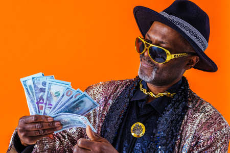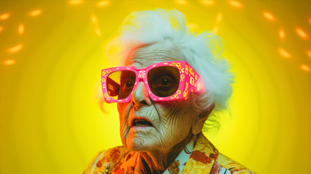 Cool senior man with fashionable clothing style portrait on colored background - Funny old male pensioner with eccentric style having fun