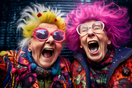 Joyful Elderly Women in Vibrant Knitwear Celebrating with Laughter. Generative ai. High quality illustration
