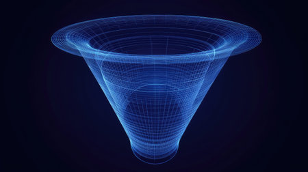 Abstract 3D funnel design. visually representing a focused path towards a singular point. ideal for concepts of target focus. goals. and success.